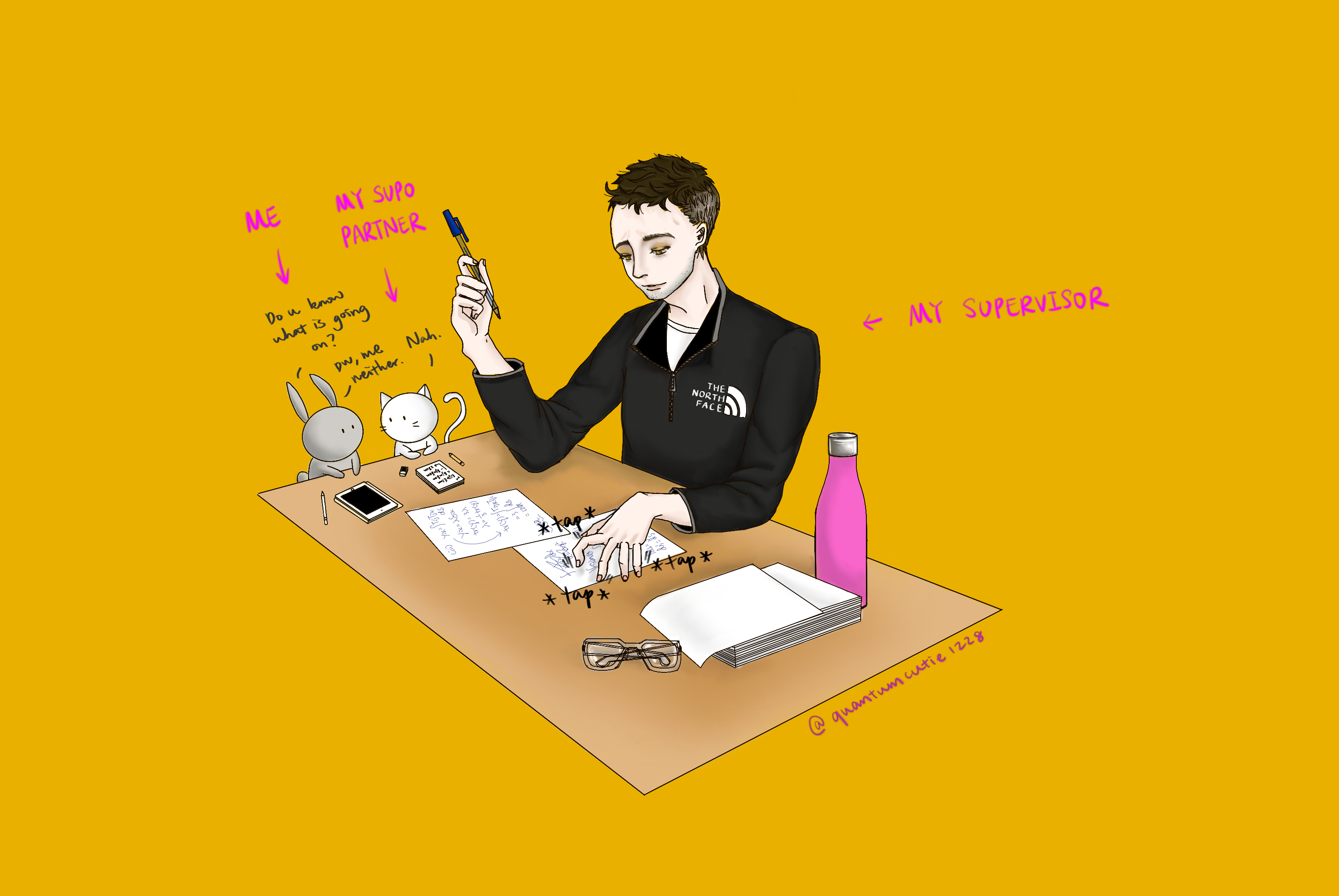 A supervision with me as depicted by a student (artist credit @quantumcutie1228)